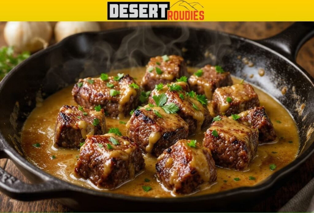 • In the same pan, melt additional butter with minced garlic, deglaze with a splash of beef stock, and toss the steak bites back through the sauce.